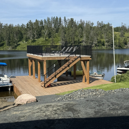 We built a sturdy and stylish boat port with a rooftop deck on West Hawk Lake, combining function and relaxation. The boat port provides shelter for your watercraft, while the rooftop deck offers the perfect spot to soak up the sun and enjoy the beautiful lake views.